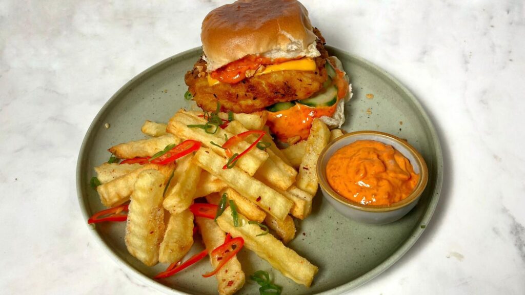 This Malaysian-style fried fish sandwich is served with homemade salt and chilli fries. – Julie Lin