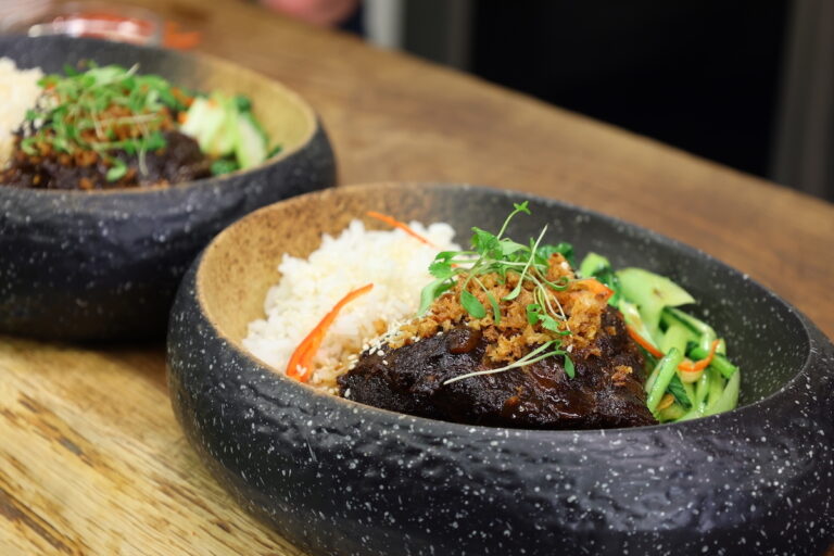 Soy Braised Beef Cheeks, Jasmine Rice, Garlic Choy Sum